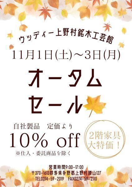 期間中は自社製品を定価の10%引きで販売するほか、家具の特価販売も行います。